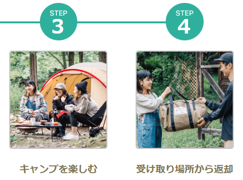 - キャンプ場で受け取って、キャンプ場で返却! 提携キャンプ場は7000件超!