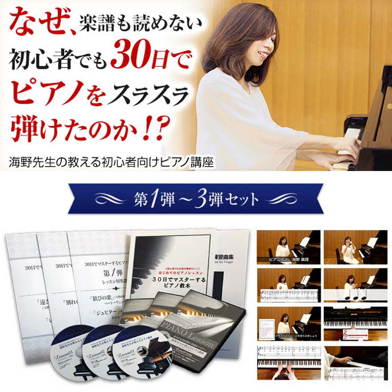 一番の特徴は「初心者でも30日でピアノをスラスラ弾けるようになる」という画期的なレッスンです。