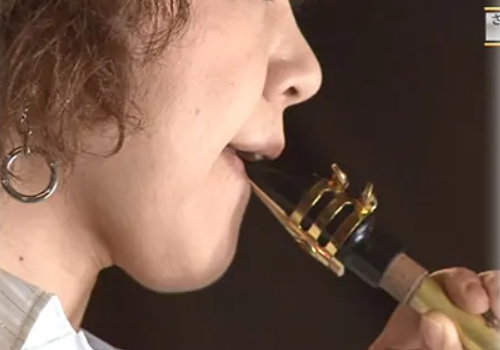 テレビやパソコンの大きな画面で見ていただくととってもわかりやすいのですが、ポイントとなる大事なところはアップ動画で吹き方がよく見えるように工夫しています。見て聞いて音の違いや吹き方を確認しながら学ぶことができます。