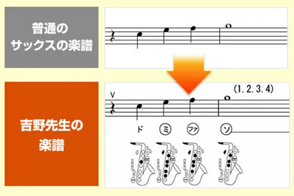吉野先生のサックス講座では、この3つの問題を解消するために、ちょっと変わった工夫がしてあります。