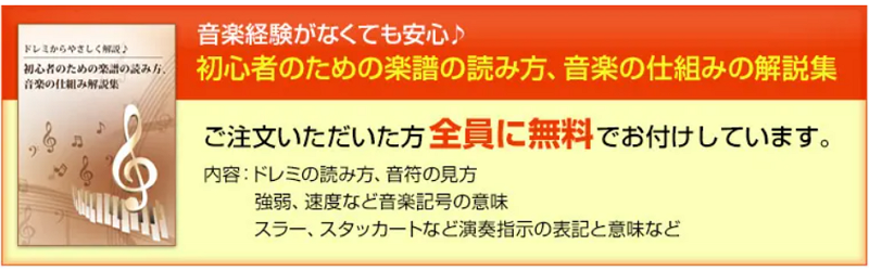 「楽譜の読み方、音楽の仕組みの解説書」が付いてくるので安心ですね!