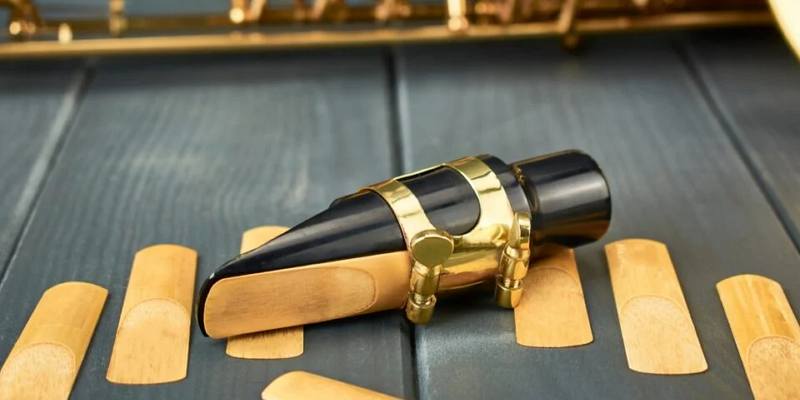 サックスは、口にくわえるマウスピースに付けたリードをふるわせて音を出す楽器です。